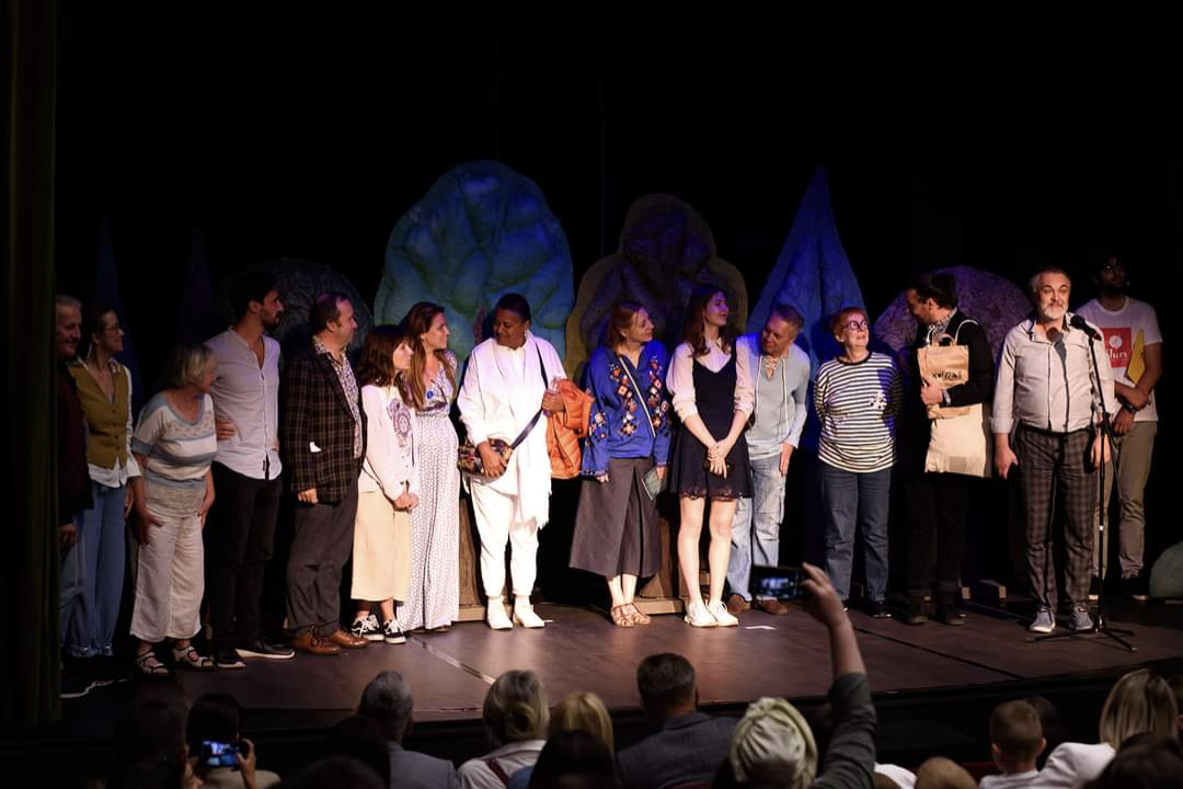 Arriba: Ceremonia de clausura del Festival FLUM y del UNIMA Collaboratorium de Títeres en Mostar, 2023