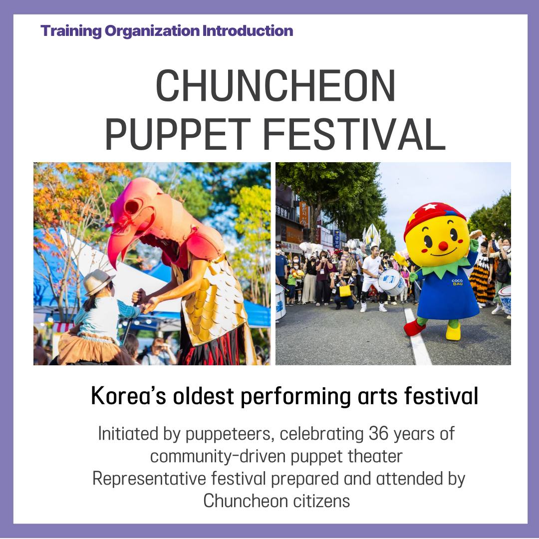Avec le soutien de la Fondation Coréenne pour l’Échange Culturel International (KOFICE), l’UNIMA Corée et le Festival de Marionnettes de Chuncheon mènent un programme de renforcement des capacités pour développer un festival dirigé par les citoyens afin de former des experts qui planifieront des festivals en collaboration avec les citoyens.
