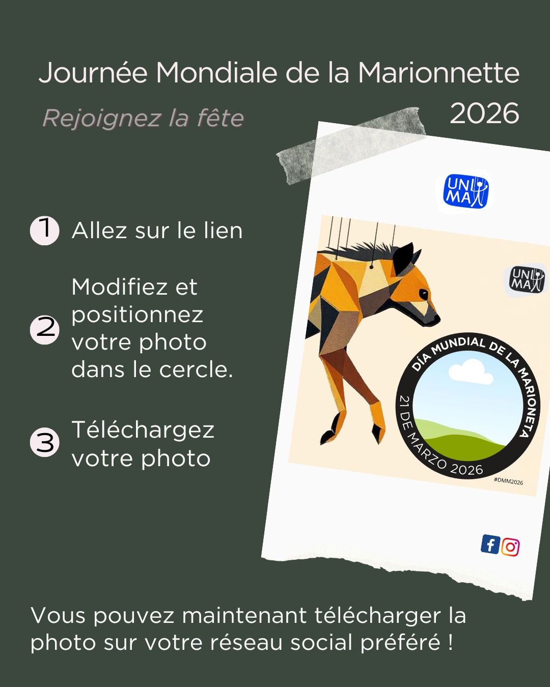 UNIMA mettra en valeur la diversité de vos publications en les repartageant le 21 mars pendant 24 heures, suivi d’une compilation vidéo mondiale de ce qui a été partagé ce jour-là.